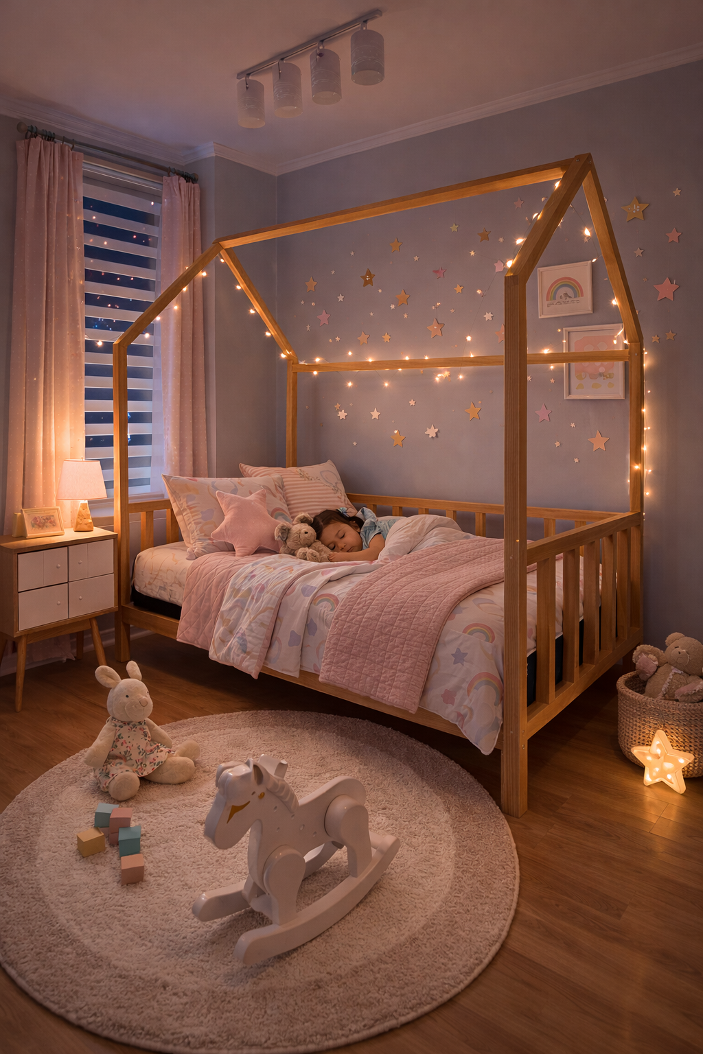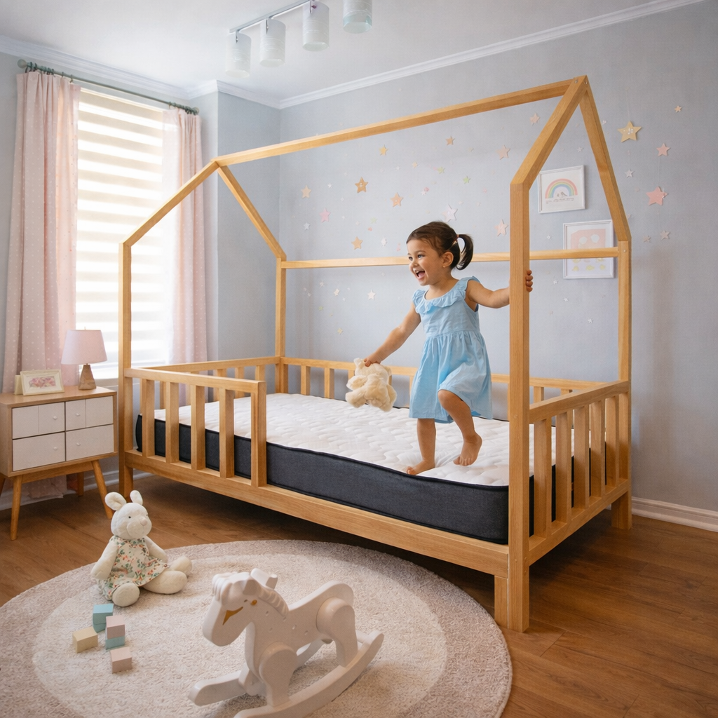 - Autonomía y Seguridad: El diseño accesible de la cama «CASITA» fomenta la independencia del niño, permitiéndole explorar su entorno con seguridad.