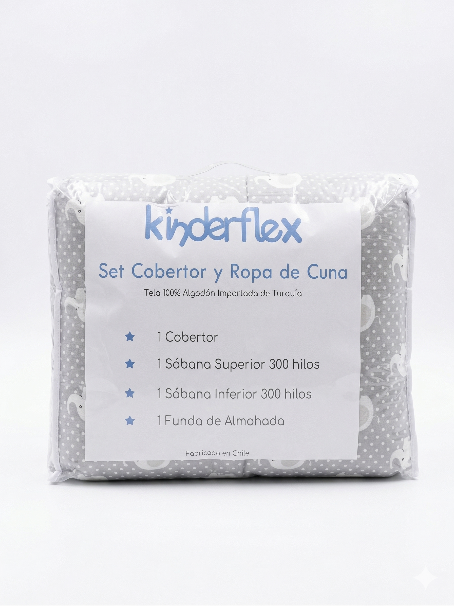 Set de Sábanas Transición + Cobertor Infantil 300 Hilos – 100% Algodón – Diseño Elefantes