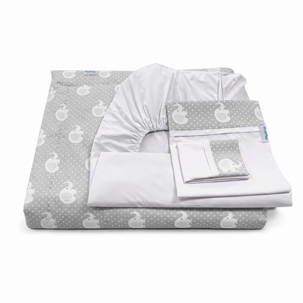 🛏️ Set de Sábanas + Cobertor Infantil 300 Hilos 100% Algodón – Tamaño Transición 150×70 cm | Diseño Elefantes Gris